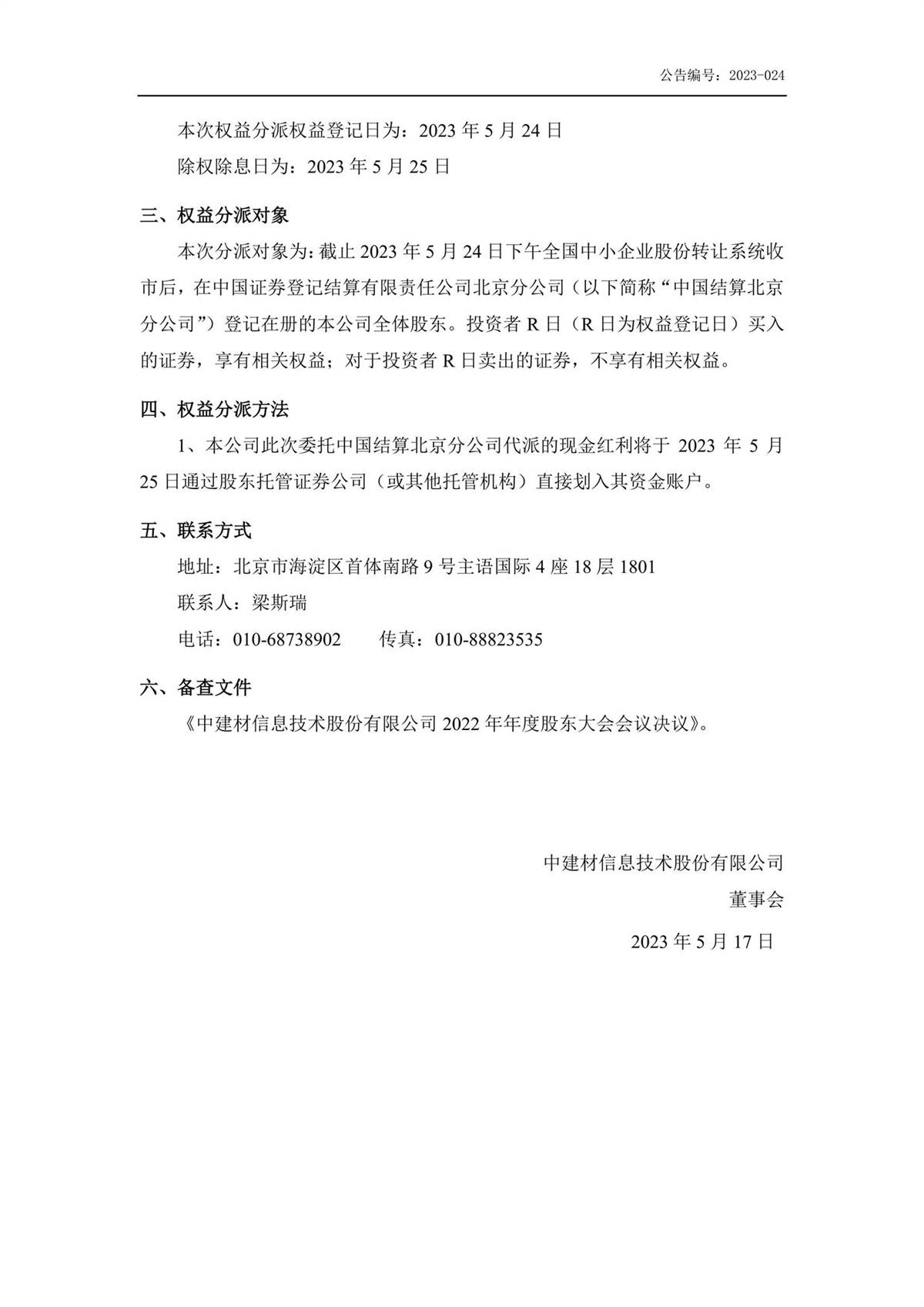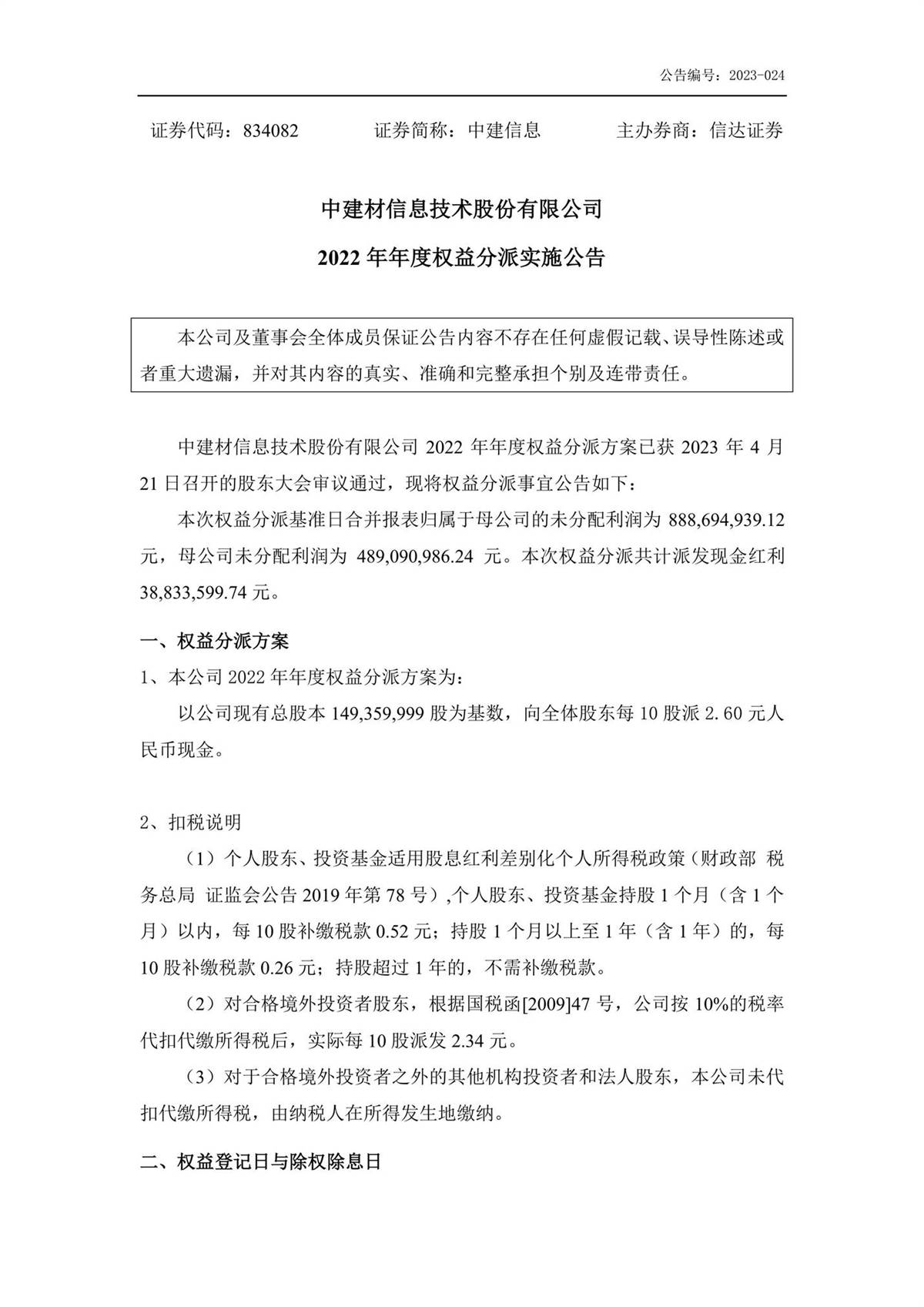 中建信息2022年年度權(quán)益分派實(shí)施公告